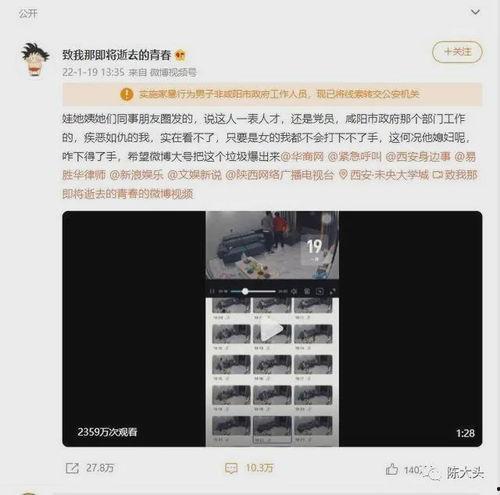 最近网上可是炸开了锅,一个咸阳打人视频成了大家茶余饭后的热门话题。这视频里,场面可谓是惊心动魄,让人看了都忍不住要为被打者捏把汗。今天,就让我带你一起来揭秘这个咸阳打人视频背后的故事。